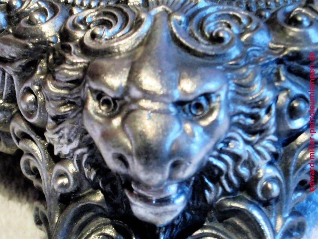 Der Fuß sowie die Verzierungen dieser Miller Lampe wurden aus Zinnguß hergestellt ! Es gab diese Lampen in Satin Silver oder einer Gold Version. Getragen wird die Lampe durch zwei Onyx Säulen.